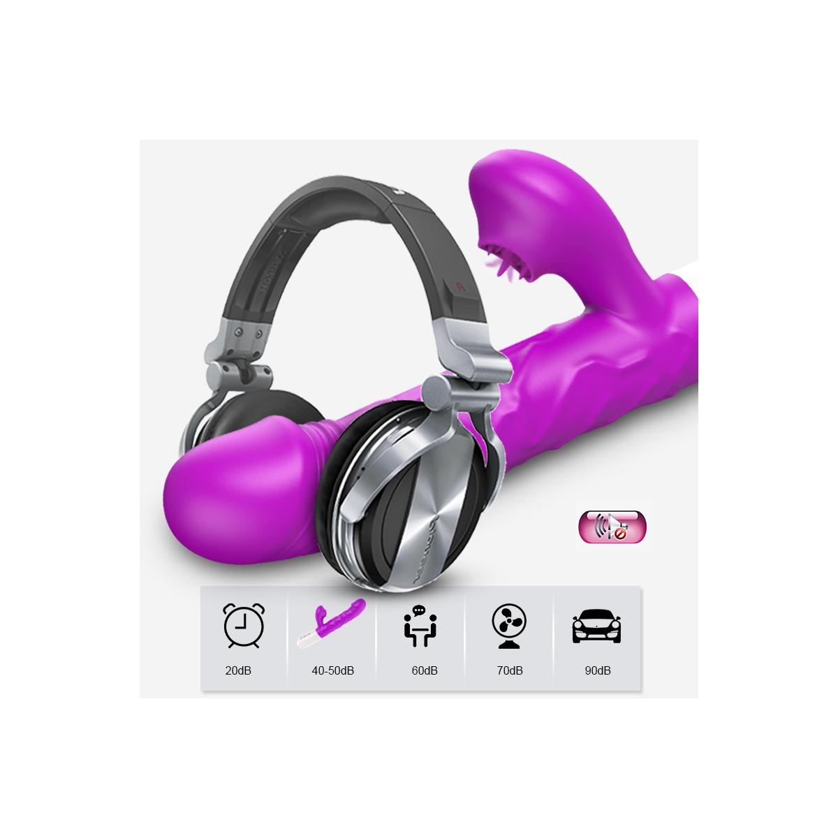 V22 - Şarjlı Akıllı Isıtmalı İleri Geri ve Dil Hareketli G-Spot ve Klitoris Uyarıcı 2 in 1 Yapay Penis Rabbit Vibratör